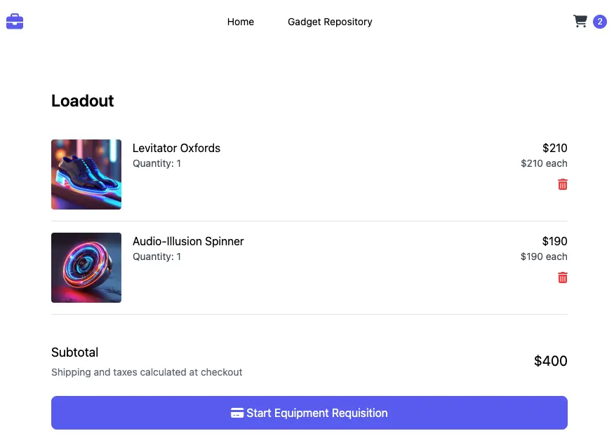 1. Webインターフェイスで、カートにいくつかのアイテムを追加します。